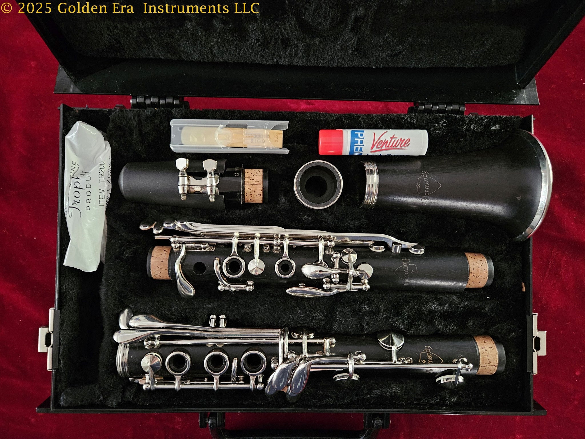 Leblanc France Normandy Wooden Intermediate Model 4 Clarinet Serial Number 76632. Professionally overhauled with new double bladder pads and corks. Nickle plated keys. Please see the photos. No cracks. A solid, quality, French-made intermediate model clarinet with Buffet rubber mouthpiece, case, and accessories. Ready to play. Great step-up model clarinet at a great price. $395 plus shipping.
