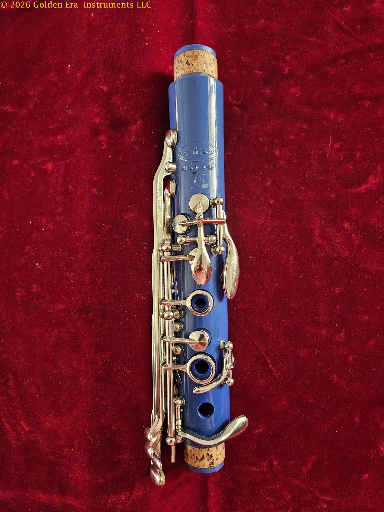 Some years ago, the Leblanc Corp. made a limited number of colored “Dazzler” clarinets in green, yellow, red, blue, and white. Although “colored” clarinets are now available from China, the Vito Dazzlers are the only quality American-made clarinets in colors other than black. These are good clarinets and sufficiently scarce to be considered collectibles. A great value at $400 plus shipping. Please see the photographs.