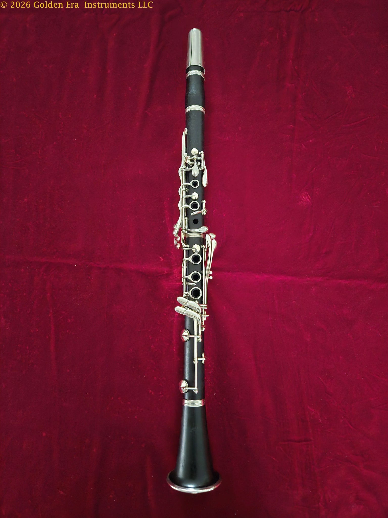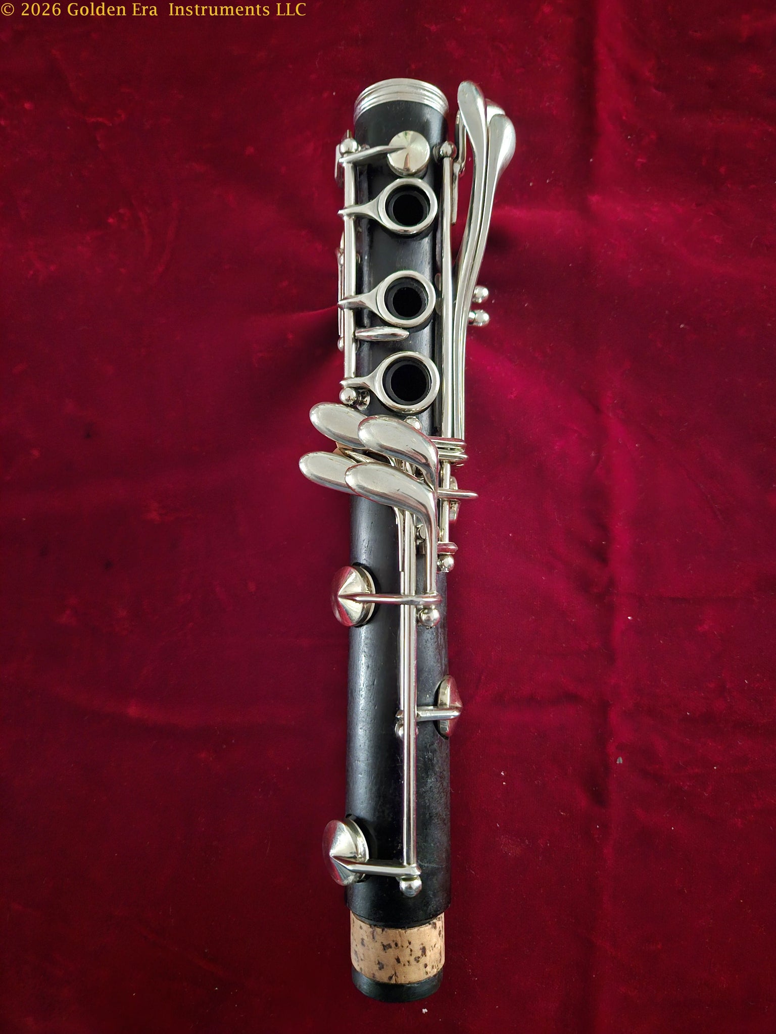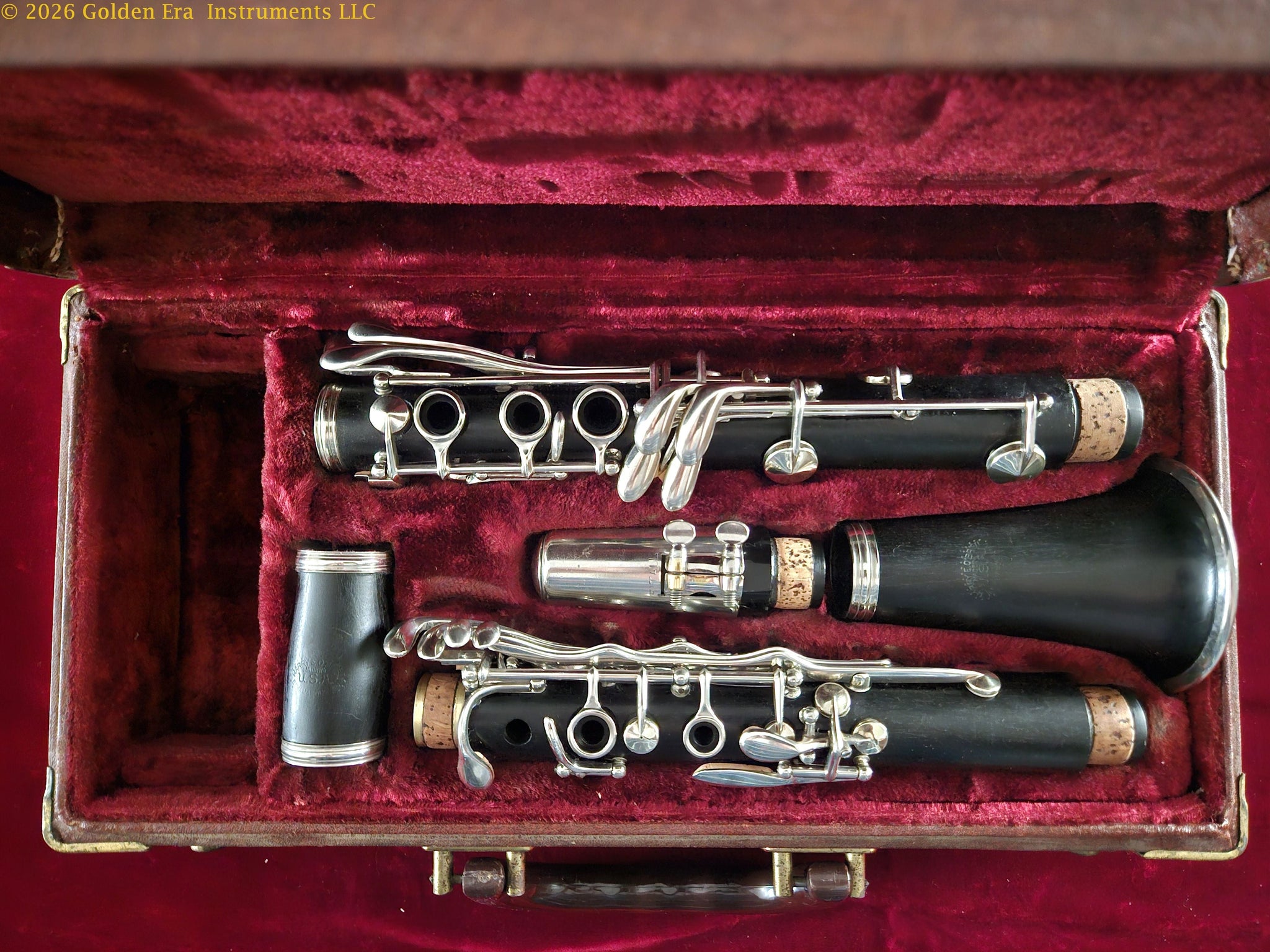 Harry O’Brien was a small regional maker in Indianapolis, Indiana. Our research informs us that he sourced parts from established companies and built clarinets on a very small scale. This instrument #M60 has been overhauled in our shop with new double-skin pads and corks. Raw nickel-silver keys. No cracks. The center tenon has had brass bushings installed to improve joint fit. Comes with case, Noblet rubber mouthpiece, and accessories. Please see the photographs. $700 plus shipping.