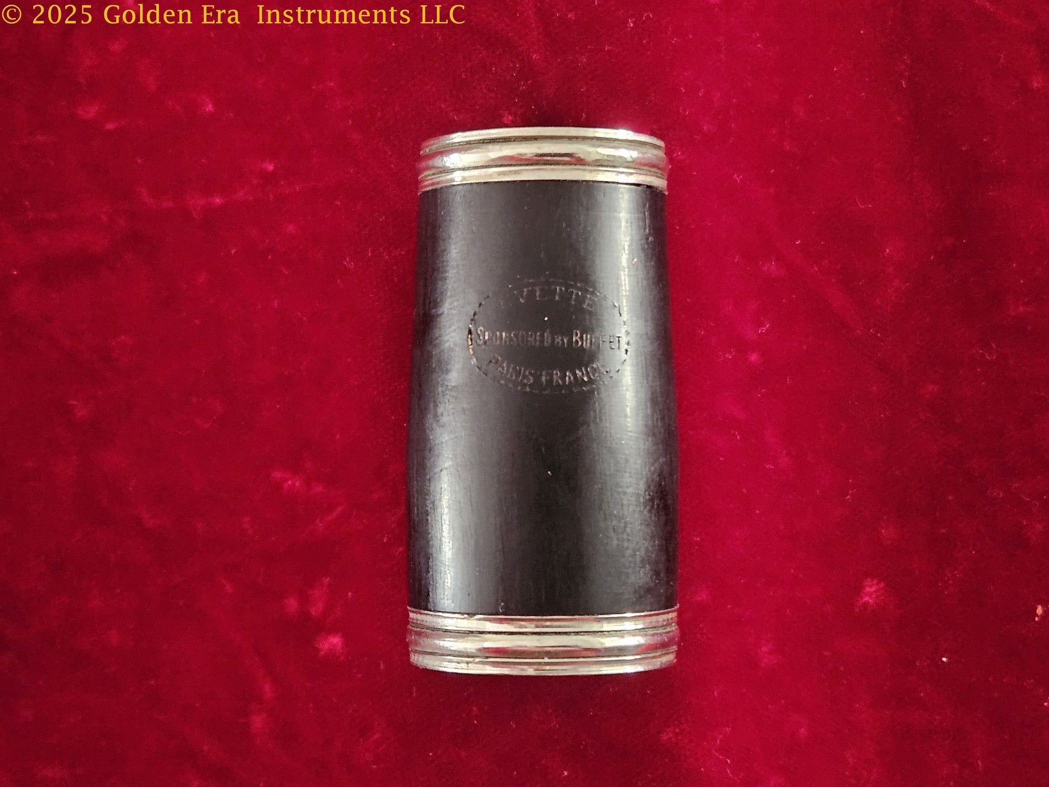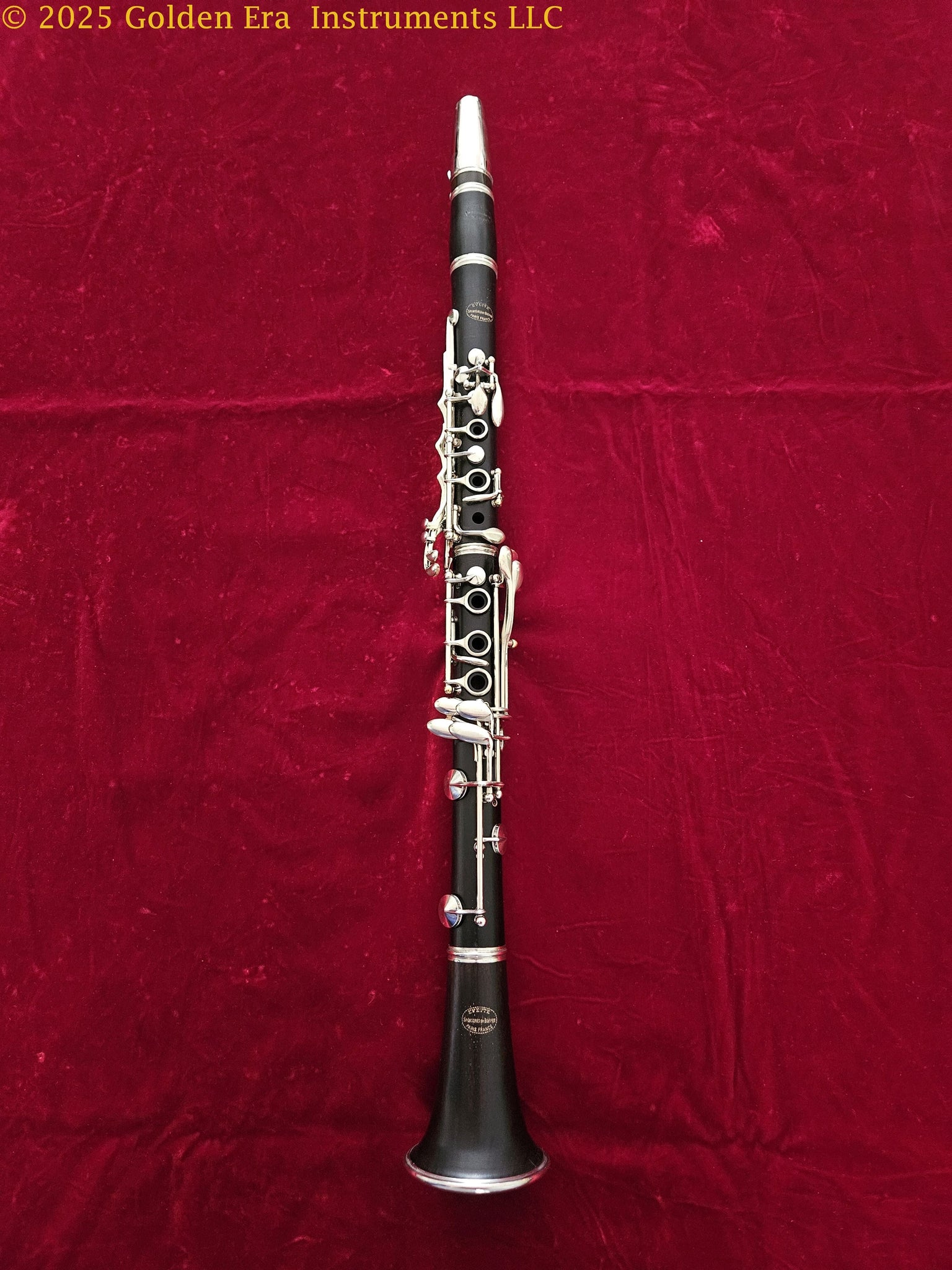 Often called the “working man’s Buffet” this Evette clarinet #6567 was made several years ago by Evette & Schaeffer which made the Buffet clarinet their professional model and this as their “lower intermediate model” instrument. We have restored this instrument with new double-skin pads and corks. No cracks. Raw nickel-silver key work. The mechanism is tight. Comes with a hard rubber mouthpiece and good case. Please see the photographs. Own a great step-up French clarinet for $400 plus shipping. If you want to own a decent French-made wooden clarinet but don’t want to pay several times more, consider the Evette by Evette & Schaeffer.